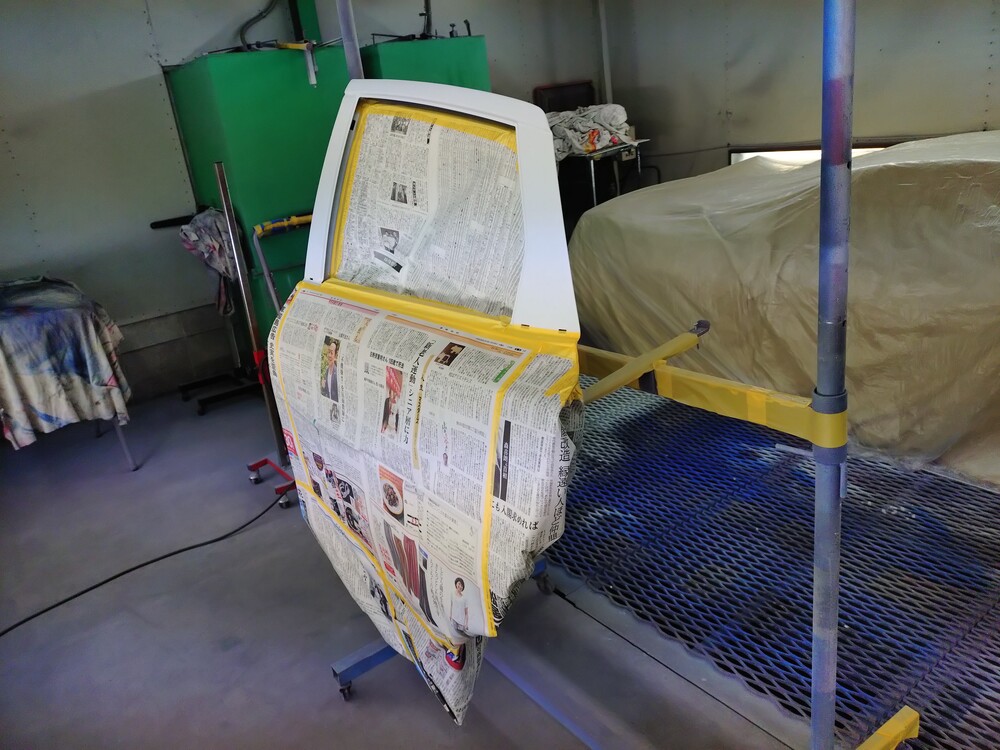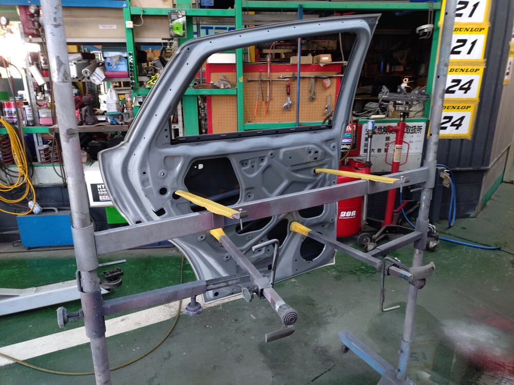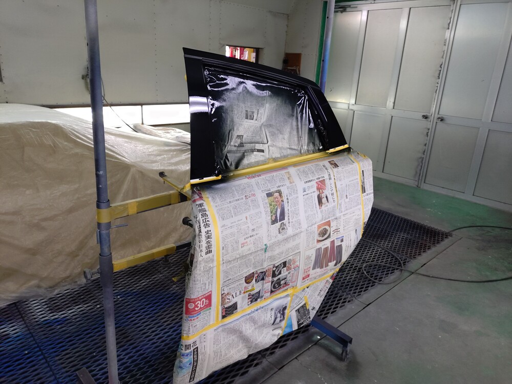 凹んでいる左リアドアを交換。