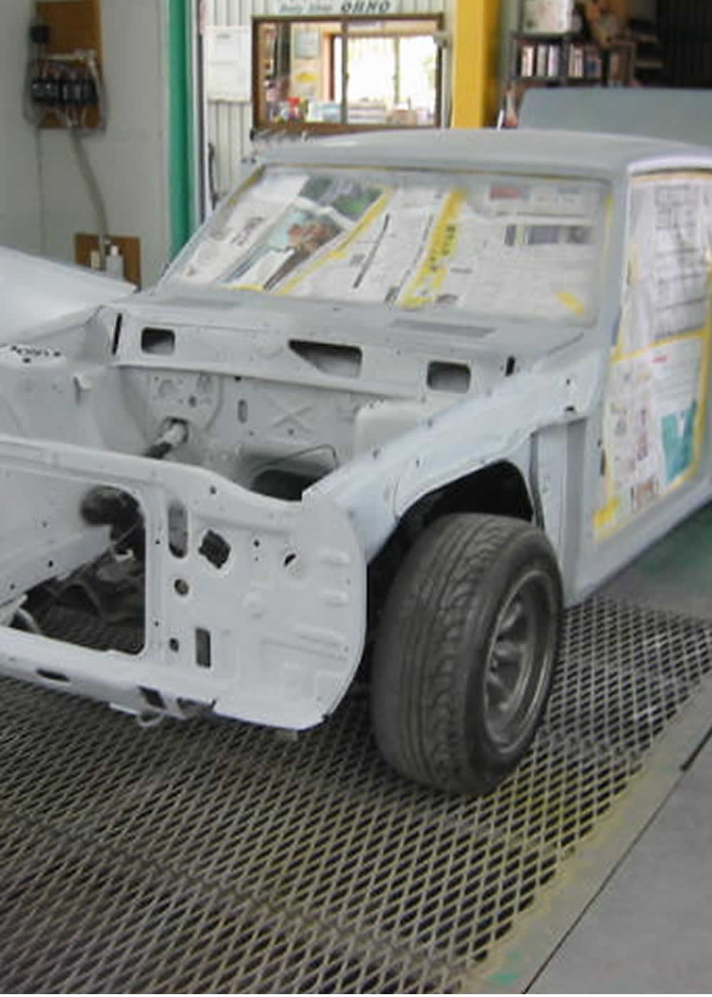 レストア | サビ取り・ボディパネル仕直し、ホワイトボディに仕上げお好みのカラーに全塗装します。 (50万円〜) |